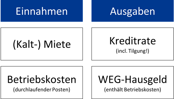 - Heiz- und Betriebskosten sind weniger wichtig, weil Sie diese an die Mieter weitergeben können. Darunter versteht man z.B. Strom, Versicherungsprämien, Müllabfuhr, Hausmeister etc.
